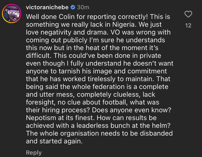 The ex-player also demanded that the Nigeria Football Federation (NFF) be dissolved and chastised the body for how it handled the Super Eagles' coaching position.