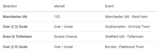 Our tickets today include Southampton, Burnley, Manchester United and Tottenham respectively.