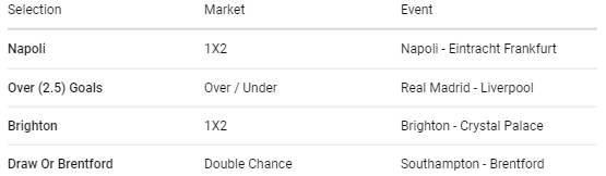 Our tickets today include Brighton, Brentford, Real Madrid and Napoli respectively.