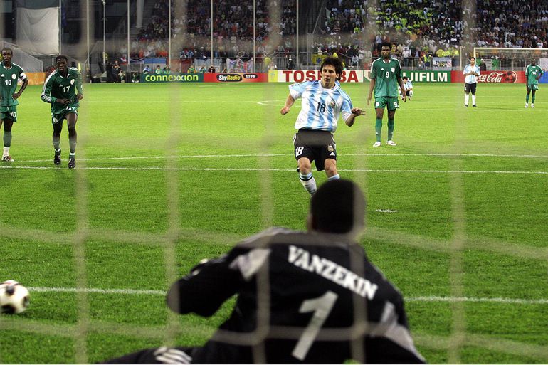 Sani Kaita attempts to slow down the then-teenager, but Messi deceives the midfielder with a feint before surging past him and staying on his feet when Kaita tries to foul the Argentine and take one for the team.