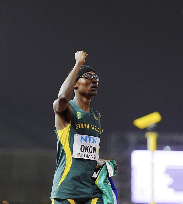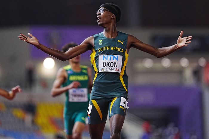South Africa’s Udeme Okon secured gold in the 400m final at the 2024 World Athletics U20 Championships in Lima, Peru.