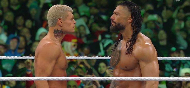 As the lights dimmed and the crowd roared, Cody Rhodes stood face-to-face with Roman Reigns, the imposing Universal Champion, in a match shrouded in uncertainty.