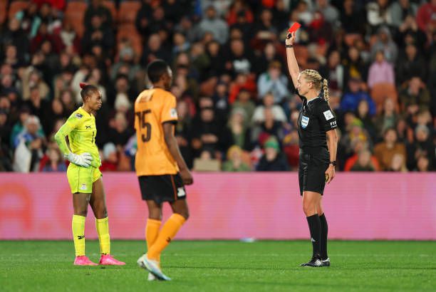 While three of her saves came inside the box, she left the pitch as the villain after she conceded two penalties and received a late red card to leave Zambia to finish the game with ten women.