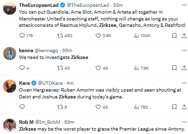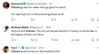 The reactions to Zirkzee's performance in the game as a substitute were negative with some fans calling for his exit from the club.