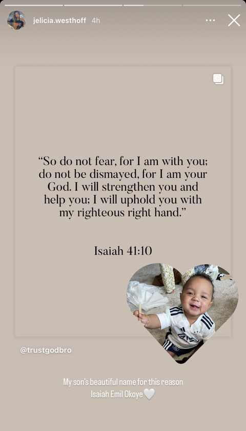 In an Instagram post, Jelicia referenced the powerful Bible verse Isaiah 41:10, writing: